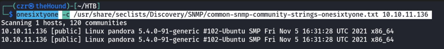 onesixtyone -c /usr/share/seclists/Discovery/SNMP/common-snmp-community-strings-onesixtyone.txt 10.10.11.136