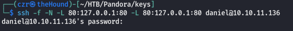 ssh -f -N -L 80:127.0.0.1:80 -L 80:127.0.0.1:80 daniel@10.10.11.136
