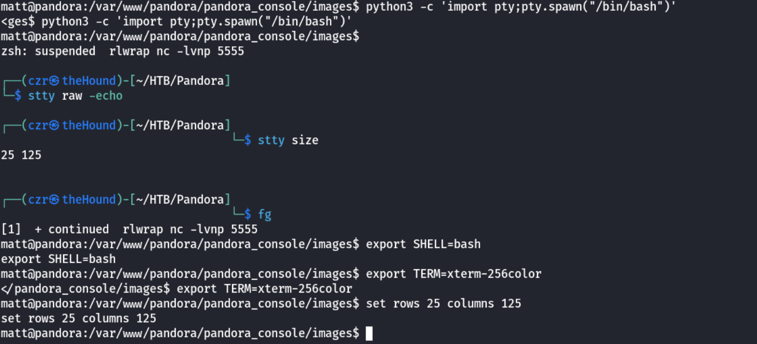 Great, we got a stable shell. I did try to enumerate everything again, but nothing. Really the intended path to be this one with the pandora_backup, so I try it again. So:
