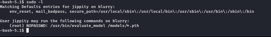 The output indicated that we can run a Python script in the /models/ directory with sudo and NOPASSWD. We also confirmed that we have write permissions in that directory.